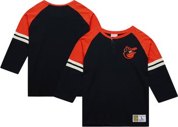 Men's Mitchell & Ness Black Baltimore Orioles Cooperstown Collection Legendary Raglan Slub Henley 3/4-Sleeve T-Shirt