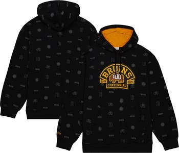 Men's Mitchell & Ness Black Boston Bruins 100th Anniversary Allover Print Pullover Hoodie