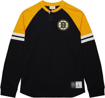 Men's Mitchell & Ness Black Boston Bruins Thermal Henley Long Sleeve T-Shirt