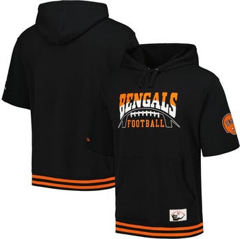Men's Mitchell & Ness Black Cincinnati Bengals Pre-Game Short Sleeve Pullover Hoodie
