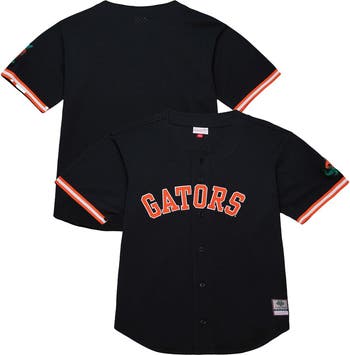 Help your gameday outfit score a style victory with this Florida Gators On The Clock fashion jersey from Mitchell & Ness. It's crafted with a full-body mesh fabric to provide a breathable and comfortable fit that's perfect for all-day wear around the ballpark. Plus, the full-button front and embroidered fabric appliques add a touch of classic baseball style to this must-have Florida Gators jersey.