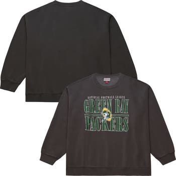 Men's Mitchell & Ness Black Green Bay Packers Downtown Crew Vintage Logo Sweatshirt