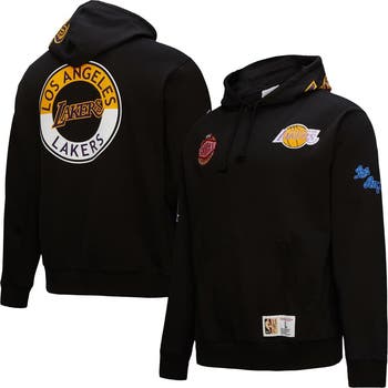 Channel the vintage vibes of Los Angeles Lakers basketball with this Mitchell & Ness Hardwood Classics Blackout Collection Pullover Hoodie. This Los Angeles Lakers hoodie features embroidered throwback team logo patches and printed team details for an authentic look. A soft fleece lining adds cozy warmth, making this hoodie perfect for moderate temperatures.