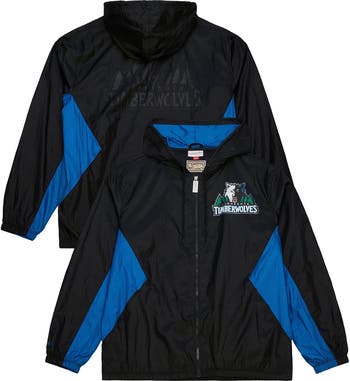 Men's Mitchell & Ness Black Minnesota Timberwolves Playmaker Full-Zip Hooded Windbreaker Jacket