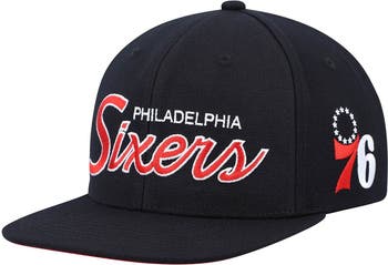 Men's Mitchell & Ness Black Philadelphia 76ers Hardwood Classics Script 2.0 Snapback Hat