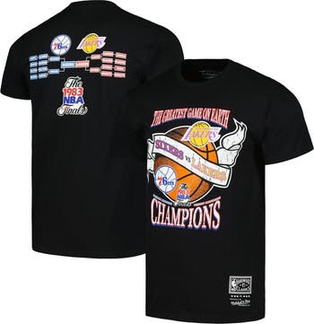 Men's Mitchell & Ness Black Philadelphia 76ers vs. Los Angeles Lakers Hardwood Classics 1983 NBA Finals Champions Victory Road T-Shirt