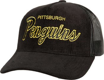 Showcase your timeless NHL style with this Pittsburgh Penguins Times Up Cord trucker hat from Mitchell & Ness. It features a classic script design in bold lettering across the front panel with mesh mid and rear panels for extra breathability. The snap closure easily adjusts to ensure a comfortable fit as you rep your Pittsburgh Penguins fandom.