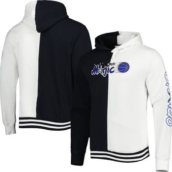 The Mitchell & Ness Black/White Orlando Magic Hardwood Classics Split Pullover Hoodie is the perfect way to show your support for the Orlando Magic. This midweight hoodie is made from a soft cotton and polyester blend, featuring a fleece lining for added warmth. The drawstring hood provides a secure fit, while the two front pockets are ideal for storing essentials. The screen-printed graphics on the front and back proudly display the Orlando Magic logo, allowing you to showcase your team spirit wherever you go.