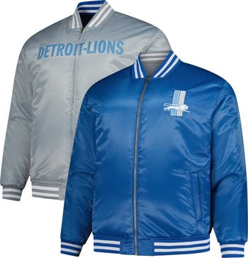 Men's Mitchell & Ness Blue/Silver Detroit Lions Big & Tall Throwback Reversible Full-Zip Jacket