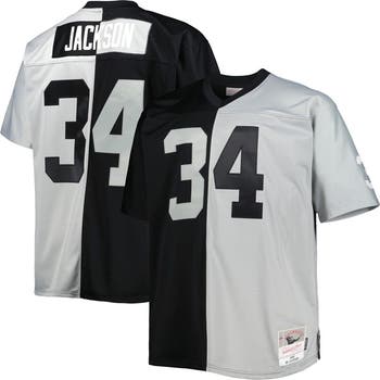 Men's Mitchell & Ness Bo Jackson Black/Silver Las Vegas Raiders Big & Tall Split Legacy Retired Player Replica Jersey