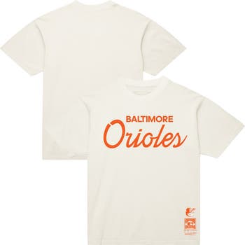 Men's Mitchell & Ness Cream Baltimore Orioles Vintage Script T-Shirt