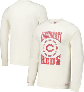 Men's Mitchell & Ness Cream Cincinnati Reds Arched Logo Slub Long Sleeve T-Shirt