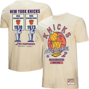 Rep your New York Knicks all season long with this Hardwood Classics Champions Vintage T-Shirt. From Mitchell & Ness, it features an eye-catching, commemorative graphic printed on the front for a bold look that's perfect for game days. This tee is finished with a classic crew neck cut and crafted from soft cotton fabric for premium comfort when cheering on the New York Knicks.