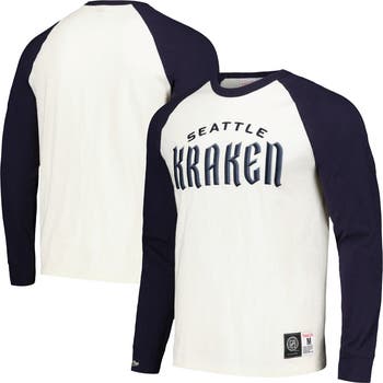 Men's Mitchell & Ness Cream Seattle Kraken Legendary Slub Vintage Raglan Long Sleeve T-Shirt