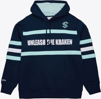 Show your Seattle Kraken pride with this Mitchell & Ness Head Coach Slogan Hoodie. This pullover is perfect for moderate temperatures, keeping you warm and comfortable whether you're at the game or out and about. Its embroidered Seattle Kraken graphics and sewn-on stripes add a touch of style, while the fleece lining provides an extra layer of warmth.