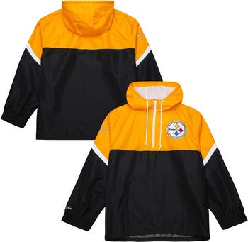 Men's Mitchell & Ness Gold/Black Pittsburgh Steelers Tie Breaker Vintage Logo Lightweight Anorak Half-Zip Windbreaker