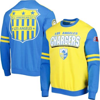 Men's Mitchell & Ness Gold Los Angeles Chargers All Over 2.0 Pullover Sweatshirt