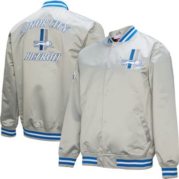 Men's Mitchell & Ness Gray Detroit Lions Double Down Satin Full-Snap Jacket