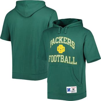 Men's Mitchell & Ness Green Green Bay Packers Washed Short Sleeve Pullover Hoodie