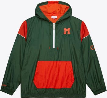 Men's Mitchell & Ness Green Miami Hurricanes Anorak Vintage Logo Half-Zip Hoodie Jacket