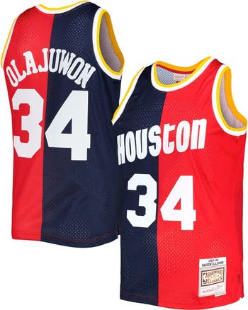 Men's Mitchell & Ness Hakeem Olajuwon Navy/Red Houston Rockets Hardwood Classics 1993/94 Split Swingman Jersey