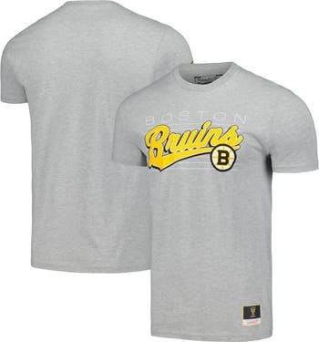 Men's Mitchell & Ness Heather Gray Boston Bruins 100th Anniversary Script Sweep T-Shirt