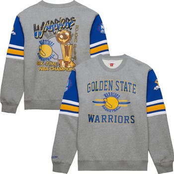 Men's Mitchell & Ness Heather Gray Golden State Warriors Hardwood Classics All Over 4.0 Pullover Sweatshirt