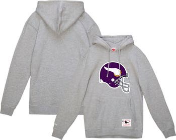 Men's Mitchell & Ness Heather Gray Minnesota Vikings Helmet Logo Vintage Pullover Hoodie