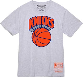 Men's Mitchell & Ness Heather Gray New York Knicks Hardwood Classics Vintage Logo T-Shirt
