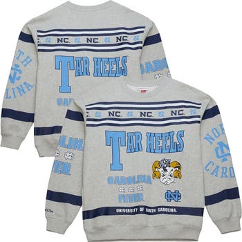 Men's Mitchell & Ness Heather Gray North Carolina Tar Heels All Over Print Sweatshirt