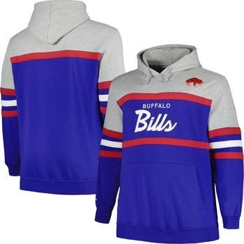 Men's Mitchell & Ness Heather Gray/Royal Buffalo Bills Big & Tall Head Coach Pullover Hoodie