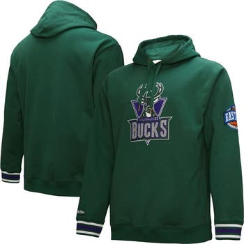 Men's Mitchell & Ness Hunter Green Milwaukee Bucks Hardwood Classics Chainstitch Vintage Heavyweight Pullover Hoodie