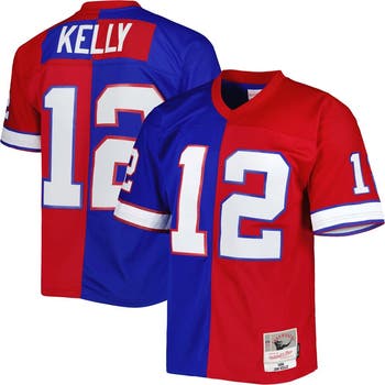 Men's Mitchell & Ness Jim Kelly Royal/Red Buffalo Bills 1990 Split Legacy Replica Jersey