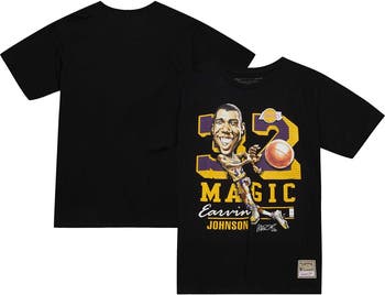Men's Mitchell & Ness Magic Johnson Black Los Angeles Lakers Hardwood Classics Caricature T-Shirt