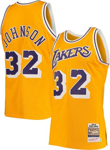 Men's Mitchell & Ness Magic Johnson Gold Los Angeles Lakers 1984/85 Hardwood Classics Authentic Jersey
