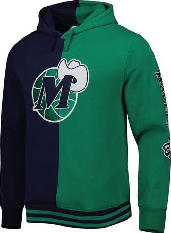 Men's Mitchell & Ness Navy/Green Dallas Mavericks Hardwood Classics Split Pullover Hoodie