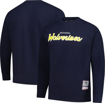 Men's Mitchell & Ness Navy Michigan Wolverines Elite Script Pullover Sweatshirt