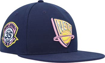 Men's Mitchell & Ness Navy New Jersey Nets 35 Years Burnt Sunrise Fitted Hat