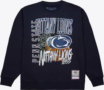 Men's Mitchell & Ness Navy Penn State Nittany Lions Half Time Fleece Crewneck Sweatshirt