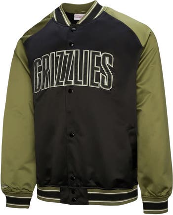 Men's Mitchell & Ness Olive/Black Memphis Grizzlies Clutch Satin Raglan Full-Snap Jacket