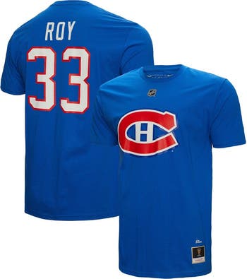 Men's Mitchell & Ness Patrick Roy Blue Montreal Canadiens Name & Number T-Shirt