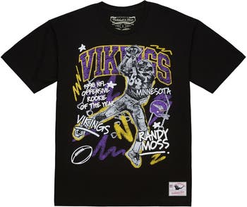 Celebrate the legacy of a Minnesota Vikings legend with this Randy Moss Chalked Up Player Graphic T-Shirt from Mitchell & Ness. The vintage chalk-inspired graphic on the front pays homage to the four-time All-Pro's 9,142 yards and 90 touchdowns across his first seven seasons. The rib knit collar and soft cotton fabric provide all-day comfort, making it perfect for game day or everyday wear.