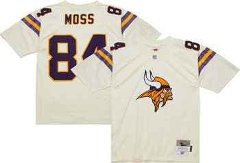 Men's Mitchell & Ness Randy Moss Cream Minnesota Vikings Chainstitch Legacy Jersey