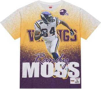 Relive the glory days of Randy Moss with this Minnesota Vikings Burst Retired Player T-Shirt from Mitchell & Ness. Made from a blend of polyester and cotton, it features a sublimated design on the front, showcasing an image of Randy Moss in action along with team details that celebrate his legacy. The woven jock tag at the hem adds a touch of authenticity, making this tee a true collector's item for any Vikings fan.