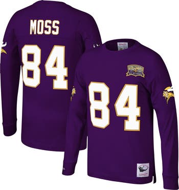 Men's Mitchell & Ness Randy Moss Purple Minnesota Vikings Big & Tall Retired Player Name & Number Long Sleeve Top