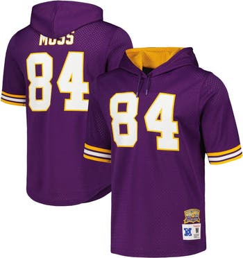 Men's Mitchell & Ness Randy Moss Purple Minnesota Vikings Retired Player Name & Number Mesh Hoodie T-Shirt