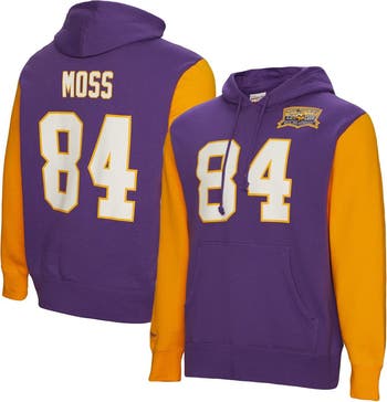 Men's Mitchell & Ness Randy Moss Purple Minnesota Vikings Retired Player Name & Number Pullover Hoodie