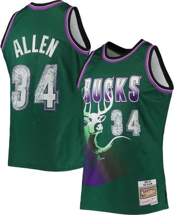 Men's Mitchell & Ness Ray Allen Green Milwaukee Bucks 1996/97 Hardwood Classics NBA 75th Anniversary Diamond Swingman Jersey