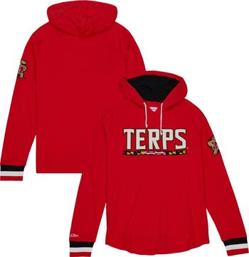 The Men's Mitchell & Ness Red Maryland Terrapins Legendary Raglan Pullover Hoodie is the perfect way to show your support for the Maryland Terrapins. Made from soft cotton, this lightweight hoodie is ideal for moderate temperatures. Embroidered fabric appliques with felt details add a stylish touch, while the front pocket pouch conveniently stores essentials. Raglan sleeves and a rounded hem ensure a comfortable fit, and the contrast-color hood lining provides a vibrant accent. Whether cheering on the Terrapins at the game or relaxing at home, this hoodie offers both comfort and style.