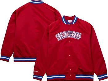 Throwback to the past with this comfortable Mitchell & Ness Wordmark full-snap jacket dedicated to the Philadelphia 76ers. Featuring raglan sleeves and instantly recognizable Philadelphia 76ers graphics and colors, this stunning piece of gear won't sit in your closet for long. As soon as cooler weather arrives, you'll be sporting this snazzy jacket.